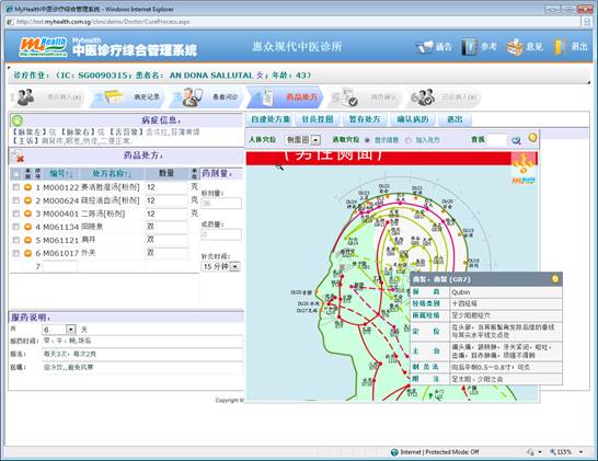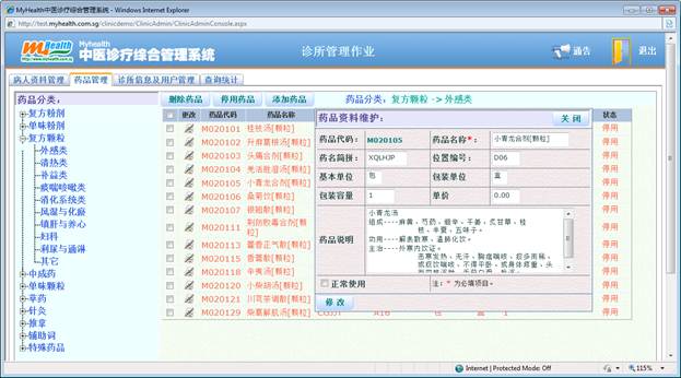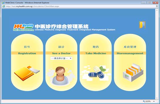 本系统是我公司(MyHealth Technology Solutions Pte Ltd )在目前使用的Myhealth中医诊疗系统(Windows版)的基础上,根据用户的建议,重新设计界面,优化诊疗程序,提升开发的WEBBASE版的中医诊疗管理系统。