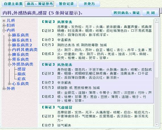 3)病名、辨证参考界面: