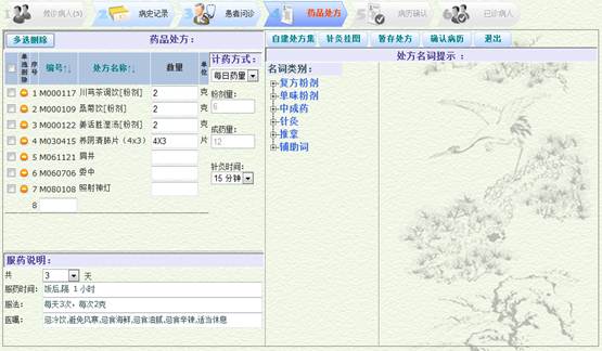 4)药品处方界面: